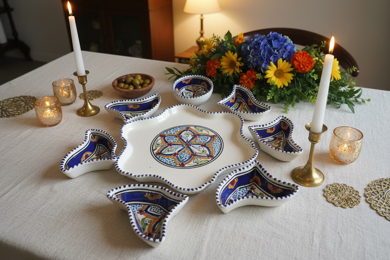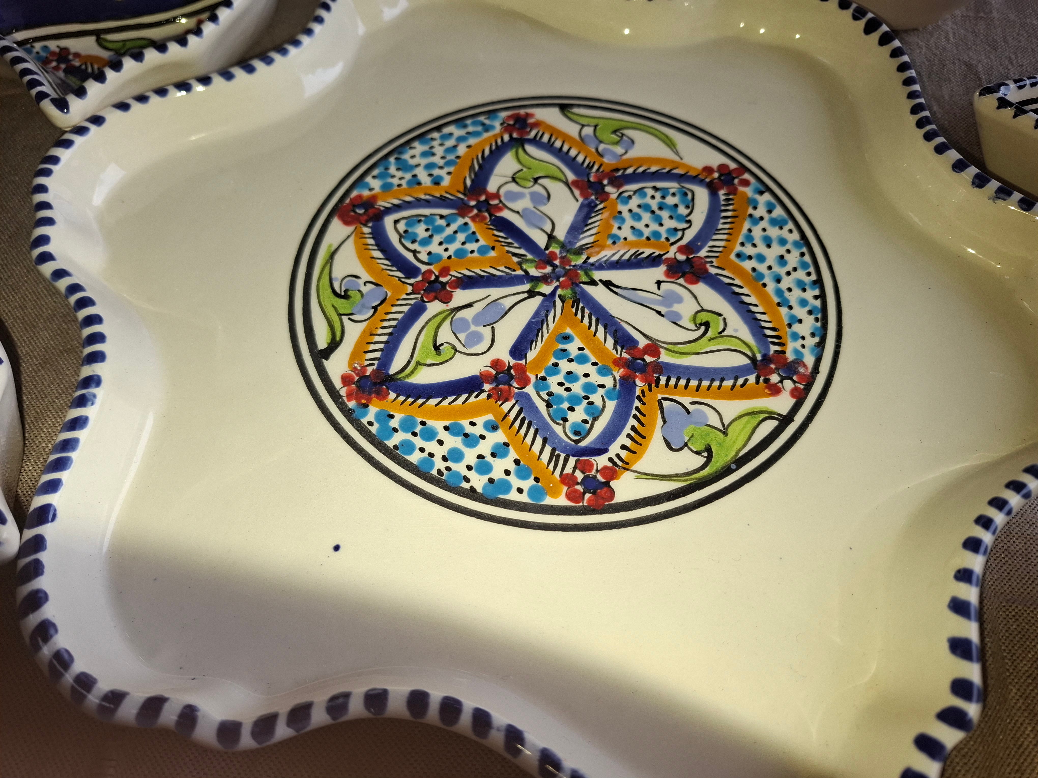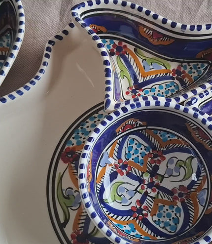 Unsere handgefertigte Keramik Tapas Schale im Blume Muster verbindet mediterrane Handwerkskunst mit stilvollem Design. Jede Schale wird sorgfältig von Hand gefertigt und erhält dadurch ihren individuellen Charakter.